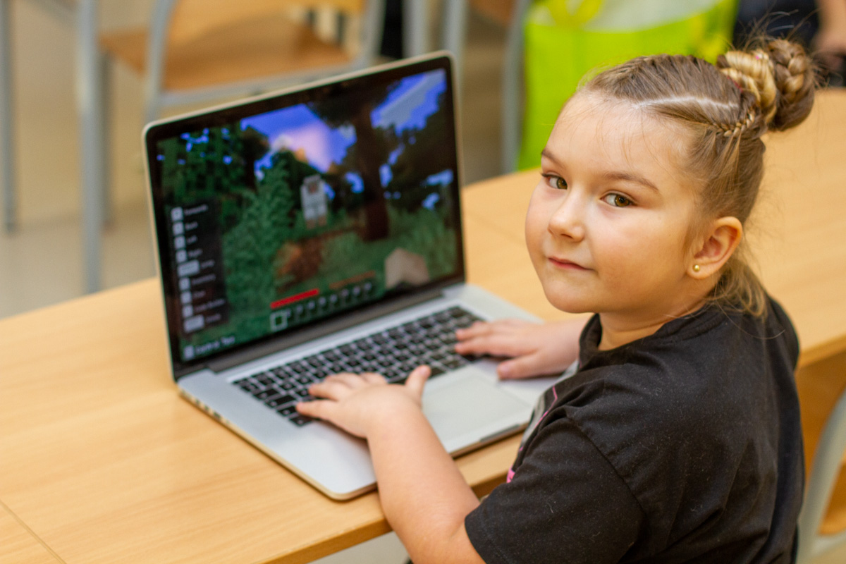 W czasie zajęć dzieci poruszają się w świecie Minecraft. Przed nimi stoją konkretne zadania do wykonania, a ich realizacja możliwa jest dzięki wprowadzeniu odpowiedniego kodu programistycznego.